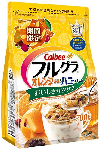 すっきりとした甘さのハチミツ風味グラノーラ生地にほろ苦いオレンジピールをトッピングしました。