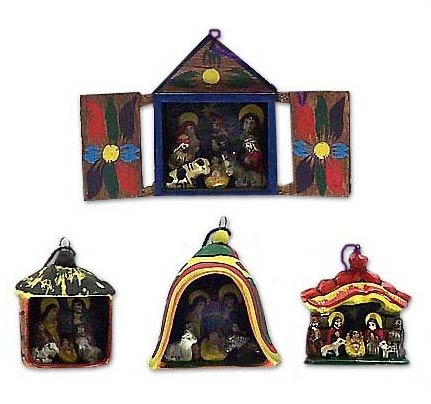 -. Title : NOVICA Decorative Religious Wood and Ceramic Hanging Holiday Ornament, Assorted, 'Nativity' (Set of 4)