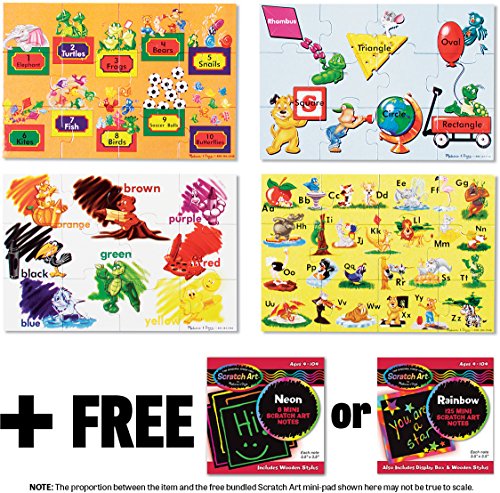 -. Binding : Toy -. Brand : Melissa & Doug -. EAN : 9899999557364 -. Feature : ONE FREE Melissa & Doug Scratch Art Mini-Pad is bundled with this item. The style of the mini-pad you receive is randomly picked. The Scratch Art Mini-Pad is considered a FREE bundled item. If you return this item, please return it as well. / Another great toy from Melissa & Doug for early childhood. / Four puzzle set that illustrate numbers, shapes, colors and the alphabet. / Each floor puzzle has 12 educational, colorful cardboard floor puzzle pieces. / Help kids learn the ABCs, numbers 1-10, colors and shapes. For age 3+. -. IsAdultProduct : 0 -. Label : Melissa & Doug -. Manufacturer : Melissa & Doug -. Model : 0447 -. MPN : BCC955G64 -. PartNumber : BCC955G64 -. ProductGroup : Toy -. ProductTypeName : TOYS_AND_GAMES -. Publisher : Melissa & Doug -. Studio : Melissa & Doug -. Title : Beginning Skills Floor Puzzle Set (1 Set of Four 12-Piece Puzzles) + FREE Melissa & Doug Scratch Art Mini-Pad Bundle [04473]