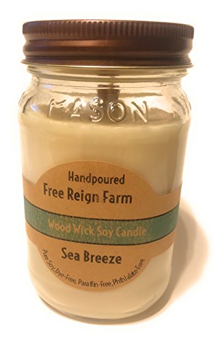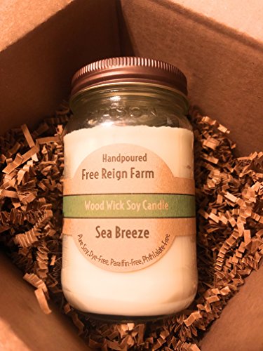 Free Reign Farm Wood Wick Soy Candle-Sea Breeze Scented-Hand Poured-Dye Free, Paraffin Free, Phalalate Free Soy Candle By
