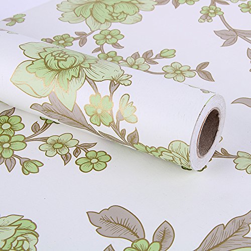 SimpleLife4U Retro Green Peony Floral Contact Paper Self-Adhesive Shelf Liner Drawer Locker Sticker 17.7 Inch By 9.8 Feet