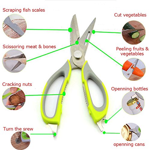 - ✂ PROFESSIONAL MULTIFUNCTIONAL DESIGN - Our professional Chef’s Multipurpose kitchen shears have built-in bottle opener, jar opener, potato peeler, fish peeler, shrimps and prawns peeler, nut cracker, seafood cracker. That permits remove the seafood shell almost without efforts! Suitable for cutlery knife block and knife holder
