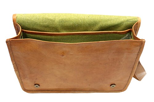 -. Feature : New genuine leather bag handcrafted with vintage style / 3 inner compartment and 2 zipper pocket / Dimensions: 15 inches (length), 11 inches (height), 4 inches (depth) / Strong & durable brass fittings & buckles, quality zippers, heavy duty lining / Adjustable shoulder strap enough for crossbody