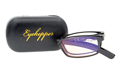 -. Feature : PRODUCTS DIMENSION-Frame Material: Plastic, Lens width: 2"(52mm), Frame width: 5 1/2"(140mm), Lens height: 1 1/8"(29mm), Frame height: 1 1/4"(33mm), Bridge (DBL): 11/16"(17mm), Temple length: 5 5/16"(135mm), Spring hinge: Yes, Lenses: Aspheric, Head size: Medium to Wider. Case length:3 3/4"(95mm), Case width:2 3/16"(55mm).Rx-able frame / EYEKEPPER COMPUTER EYEGLASSES-Obliterate Blue Light with our patented computer glasses that will keep your eyes safe from all harmful blue light, designed for anyone using an electronic device such as computers, T.V.'s or phones. This meets the requirements of the U.S. FDA, and exceeds European Union requirements / EYEKEPPER COMPUTER GAMING READING GLASSES-Included a hard case. Superior Blue Light Blocking Computer Glasses that will reduce eye strain when working on a computer, tablet, phone or television. Excellent for Relieving Visual Discomfort and fatigue associated with using a computer for long periods of time / QUALITY PLASTIC FRAME FOLDING GLASSES-FDA Registered Reading Glasses and Eyewear, Accord with ANSI Z80.3-2010, Accord with BS EN ISO 12312-1:2013 and EN14139:2010, Accord with AS/NZS 1067:2009, Top quality plastic frame, lenses and have spring-loaded hinges / LIFETIME BREAKAGE WARRANTY&30 DAY MONEY BACK GUARANTEE: In case any broken problem happens, contact the seller of Eyekepper without hesitation to solve the problem until satisfaction. Eyekepper provides lifetime after sale service for all Eyekepper computer readers glasses. Customers can return and get refunded for any reason. You have no risk to try