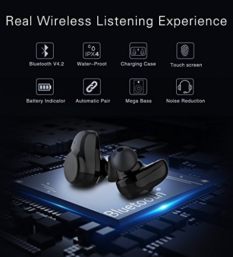 TRUE WIRELESS EARBUDS: Cable free allows you to share music or video sound to someone. No more worries about the bouncing, trapping or rubbing on something. Most importantly, it ensures your safety when you are driving your car.