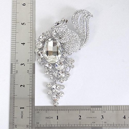 -. Title : EVER FAITH Rhinestone Crystal 4.5 Inch Lovely Little Squirrel Flower Brooch Clear
