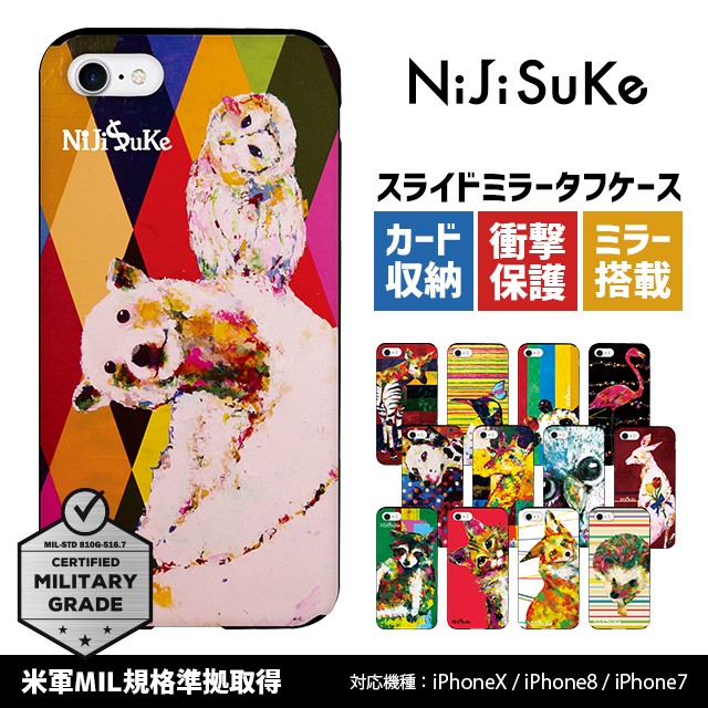 ■ iPhone アイフォン あいふぉん アイホン あいほんiPhoneX アイフォンX iPhone10 アイフォン10 10 X x用ケース x用 アイフォンxケース テンiPhoneXs アイフォンXs iPhone10s アイフォン10s 10s Xs xs用ケース xs用 アイフォンxsケースiPhone8 アイフォン8 8 アイフォン8ケース 8ケース アイホン8ケース iPhone8ケースiPhone7 アイフォン7 7 アイフォン7ケース アイフォンケース7 iphone7ケース アイホン7ケース 7ケース iphone7オシャレケース アイフォーン7ケース セブンiphone8plus 8+iphone7plus アイフォン7プラス iPhone7プラスケース iphone7プラス 7プラス 7plusPlus プラス + plusケース■ スライド ミラー タフ ケース耐衝撃 耐衝撃スマホケース 耐衝撃タフケース ソフト&ハードの2重構造 頑丈スライド式 icカード カード カード収納 カードホルダー鏡付き 鏡 ミラーミラー付き 鏡付きiphoneケース■ NiJiSuKe ニジスケ にじすけおしゃれ かわいい 可愛い おしゃれかわいい 絵画 動物 アニマル カラフルペンギン ライオン 鳥 フラミンゴ キリン しろくま シロクマ パンダブレーメンカンガルー オカメインコ 文鳥トラ 猫 ネコ ねこ