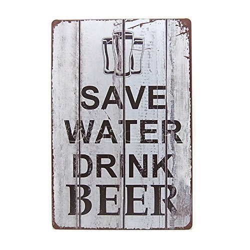 Uniquelover Save Water Drink Beer Retro Vintage Pub Bar Metal Tin Sign Wall Decor 12" X 8" Inches