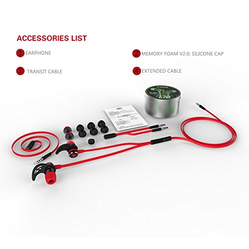 Gaming Headphones, GranVela G20 Hammering Bass In-Ear Earbuds Noise Isolating Headset Magnet Attraction Earphones with Mic and Volume Control(Red)