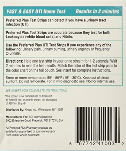 -. Binding : Health and Beauty -. Brand : PREFFERED PLUS PRODUCTS -. EAN : 0667742410032 -. Feature : Urinary tract infection test strips / 3 test strips / Individually wrapped -. IsAdultProduct : 0 -. Label : Everready First Aid -. Manufacturer : Everready First Aid -. Model : No Model -. MPN : 709790 -. NumberOfItems : 1 -. PackageQuantity : 1 -. PartNumber : 709790 -. ProductGroup : Health and Beauty -. ProductTypeName : HEALTH_PERSONAL_CARE -. PublicationDate : 2015-07-01 -. Publisher : Everready First Aid -. ReleaseDate : 2015-06-28 -. Studio : Everready First Aid -. Title : PREFFERED PLUS PRODUCTS Uti Home Test Strips, 3 Count -. UPC : 667742410032