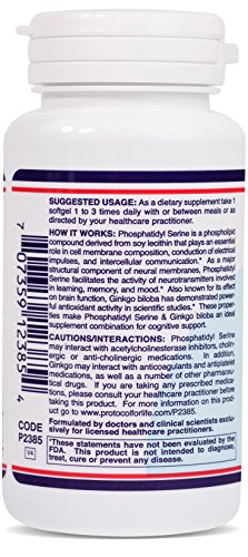Protocol For Life Balance - Phosphatidyl Serine 100 mg - Neurological & Cognitive Support with Ginkgo Biloba Extract - 60 Softgels