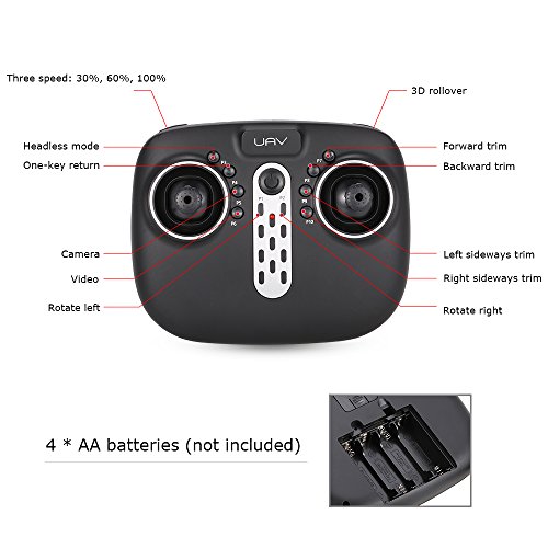 기능:Wifi FPV/위/하(아래)/좌구부러짐/우구부러짐/전진/후진/좌측면 비행/우측면 비행/360 ° flip/고속 flip 가능;LED라이트 부착,야간 비행 가능;고도 유지;헤드 레스 모드;원 키 리턴;720P카메라 부착