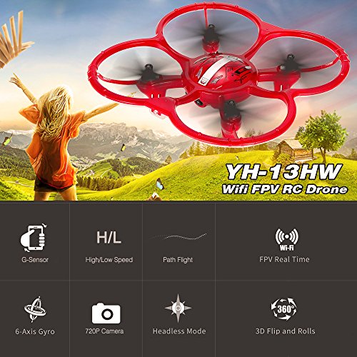 Goolsky YH YH-13HW RC드론 멀티콥터 720P카메라Wifi FPV 리얼 타임 2.4G 4CH 6축 쟈이로 LED 720P 촬영 녹화 3D비행 헤드 레스모 드론