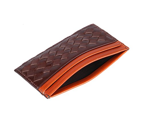Studio : SageBrown Publisher : SageBrown Binding : Apparel Product Description Flawlessly crafted this hand-woven calf leather flat card holder is a piece from our new Somerset Collection. This coveted ultra slim flat card holder is the perfect solution for those who prefer to travel light. This card holder will securely hold two credit cards in the front and two in the back. The pocket in the middle is an ideal place for receipts or a travel card. 0