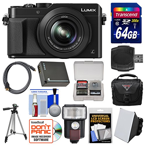 Panasonic Lumix DMC-LX100 4K Wi-Fi Digital Camera (Black) with 64GB Card + Case + Flash & Soft Box + Battery + Tripod + Kit