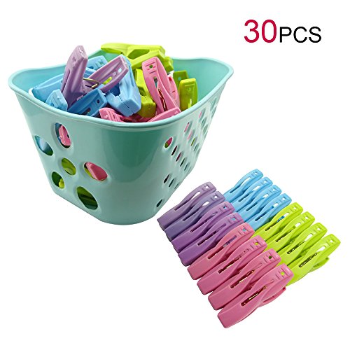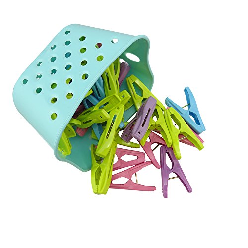 Honbay 30PCS Clothespins Clothing Clips Pegs With a Basket Durable Windproof Clothes Pins for Clothesline Hangers