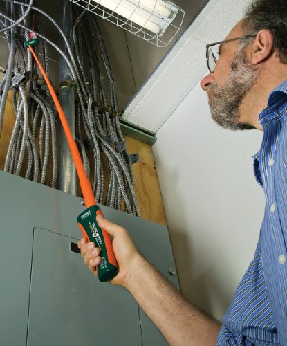 39-Inch (1m) non-contact current detector (up to 1000A)^Non-contact detection of AC current from 200mA to 1000A^Ideal for use on shielded wires or conduit behind walls, metal circuit breaker or junction boxes^Telescoping probe extends to 36-Inch (0.9m) with reach distance of 39-Inch (1m)^For use on 50/60Hz circuits