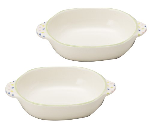 원본상품명: 萬古? 水玉 グラタン皿 グリ?ンライン (小) 2個セット 14048-2