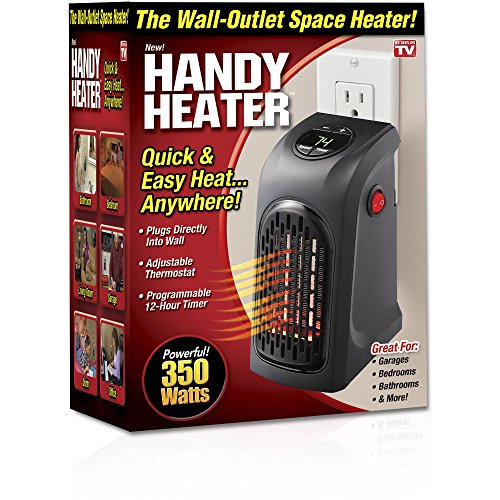 -. Brand : Handy -. Color : Black -. EAN : 0740647777575 -. Feature : Portable plugs directly into the wall ceramic heater / Come with powerful 350 watts for comforting warmth of 100-300 sq. ft. room size / Safe ceramic heating element for overheat protection and extends your comfort zone / Programmable feature and Adjustable Thermostat Control for personalized comfort / Perfect for office, bathroom, bedroom, garage, living room and more -. ProductGroup : Home Improvement -. ProductTypeName : HOME_LIGHTING_ACCESSORY -. Title : Handy Digital Display Programmable Oscillating Ceramic Fan Driven Direct Wall Mount Plug Heater with Adjustable Thermostat -. UPC : 740647777575