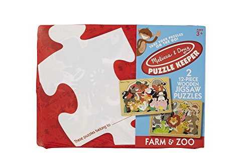 -. Feature : 2 jigsaw puzzles in an easy-to-personalize package / Each puzzle includes 12 pieces / Wooden puzzles feature farm and zoo animals / Puzzle Keeper is machine washable / Great for developing problem solving and hand-eye coordination on the go!