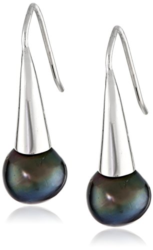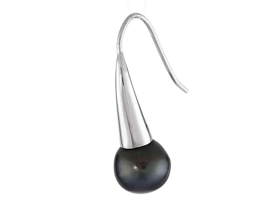 Sterling Silver Tahitian Black Cultured Pearl Drop Earrings