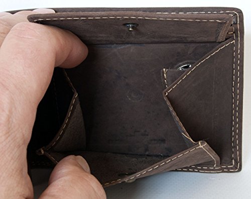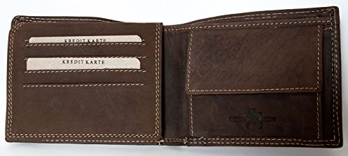 Product DescriptionMen's dark brown natural genuine leather hunter's design wallet Wild0