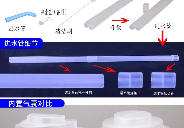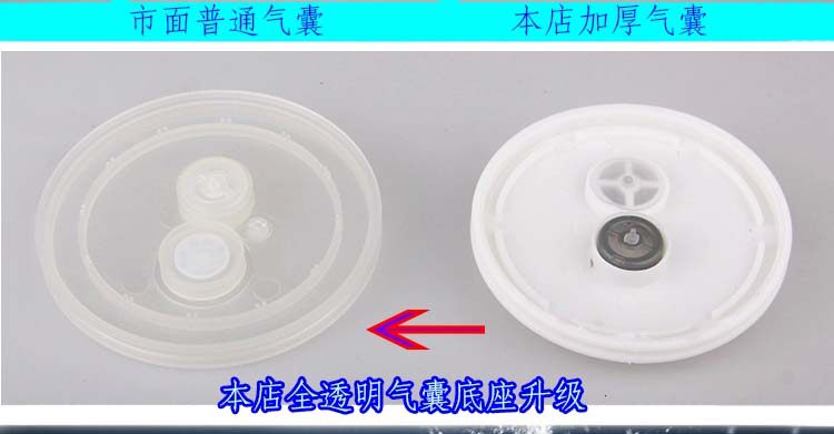 气囊是一个压水器的根本,也是最脆弱、最容易损坏的部位,好的气囊成本比差的气囊高好几倍,当然使用寿命自然也是天差地别,本店的气囊都是加厚升级气囊,所以大家可以放心购买!!