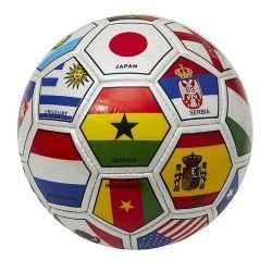-. Feature : Size #5 Official size and weight soccer ball. / Made with a high quality synthetic polyurethane material. / Pro model. / Country: International with "flags" / Shipped deflated.