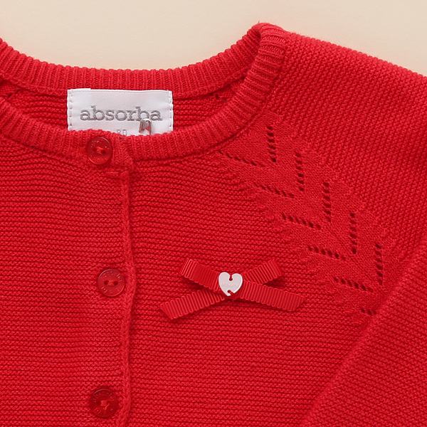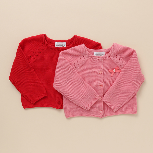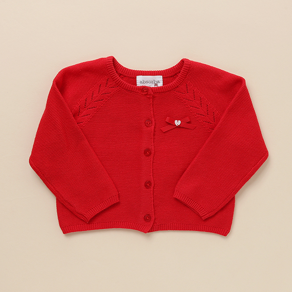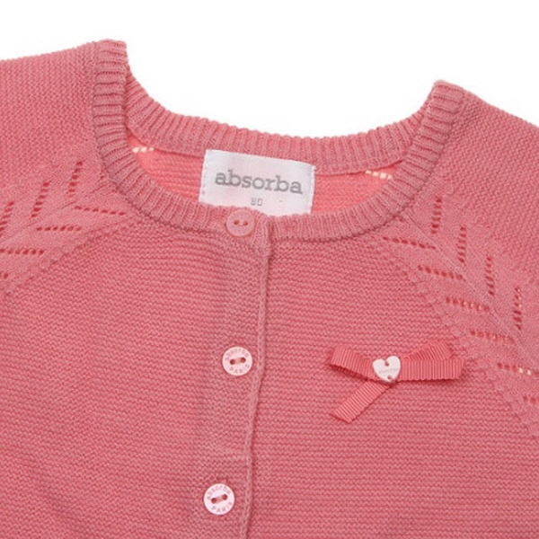 사랑스러운 핑크칼라의 가디건으로 리본테이프장식으로 포인트를 주었습니다.