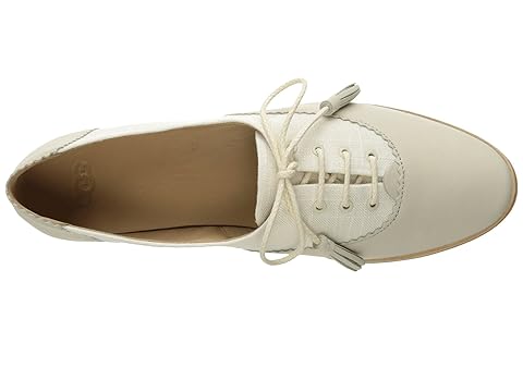 SKU: #8808266 This item is subject to quantity limitations. The streamline silhouette and beautiful detailing of the Nolita flat by UGG® will add a touch of sophistication to your look this season! Canvas and nubuck upper with decorative lacing detail at heel area. Traditional lacing system for a more secure fit. Laces features tasseled accents. Jersey and suede lining. Foam insole provides underfoot comfort. Rubber outsole. Imported. Product measurements were taken using size 7, width B - Medium. Please note that measurements may vary by size. Measurements: Heel Height: 1?4 in Weight: 7 oz |