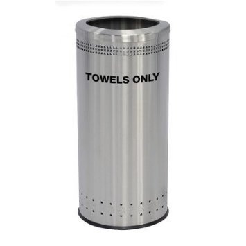 Studio : Commercial Zone Publisher : Commercial Zone Binding : Office Product Product Description 78282999 Features: -Imprinted 360 collection. -Finish: Stainless steel. -Stainless steel towel receptacle with "Towels Only" decals. -Large 12" opening is a perfect size for towels to be easily returned. -Includes "Towels Only" decal to place on both sides of bin. -Large capacity, 25 gallon container works well for high traffic areas. Product Type: -Trash bin. Gallon Capacity: -25 Gallons. Color: -Stainless Steel. Shape: -Round. Application: -Indoor. Room Use: -Office. Primary Material: -Steel. Fire Resistant: -Yes. Lid Included: -Yes. Liner Included: -Yes. Trash Bag Fastener: -Yes. Lid Type: -Open Lid. Removable Liner: -Yes. Dimensions: Overall Height - Top to Bottom: -34". Overall Width - Side to Side: -15.5". Overall Depth - Front to Back: -15.5". Overall Product Weight: -26 lbs. 0