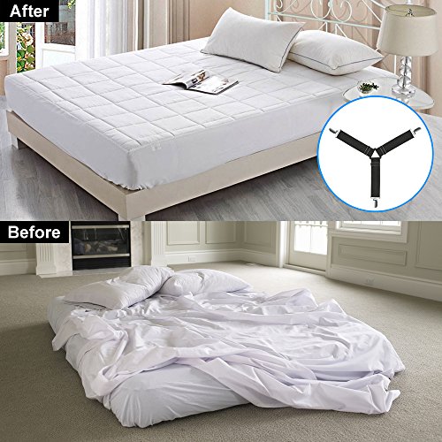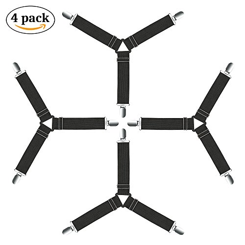 Why should choose our bed sheet Fasteners? 1.Easy to put on and keeps sheets in place and no more fixing sheets, adjustable length allows desired tension. 2.Built in plastic clenching system protects fabric from harm. 3.Fit to fitted and flat sheets on different type of beds,no matter your bed is standard size, odd shaped beds, foam beds, pillowtop beds,and more. 4.Never worry about messy or wrinkled sheets since you used this sheet fasteners. 5.30 DAYS Money Back Guarantee Specification: Color: Black Material: Elastic Nickel plated clamps Plastic Design: Triangle PackageInclude: 4×Bed Sheet Fastenters 0 |
