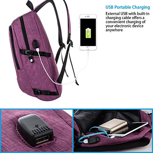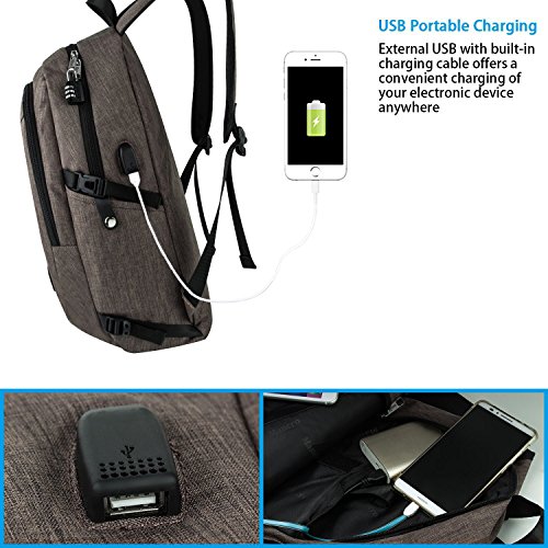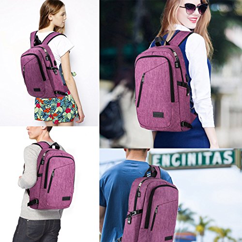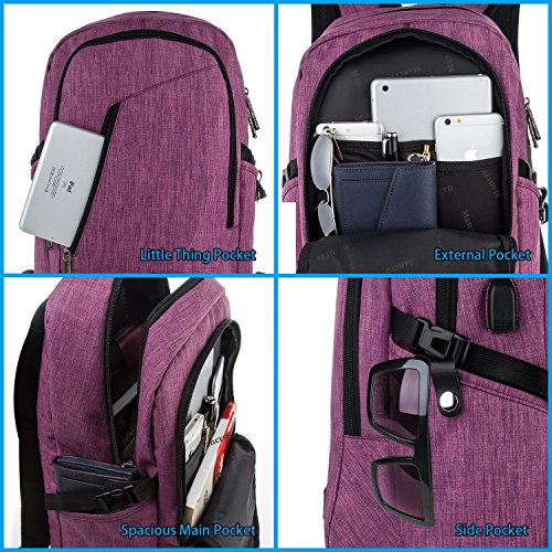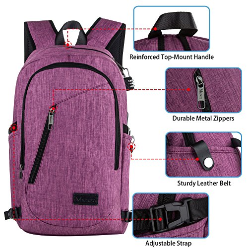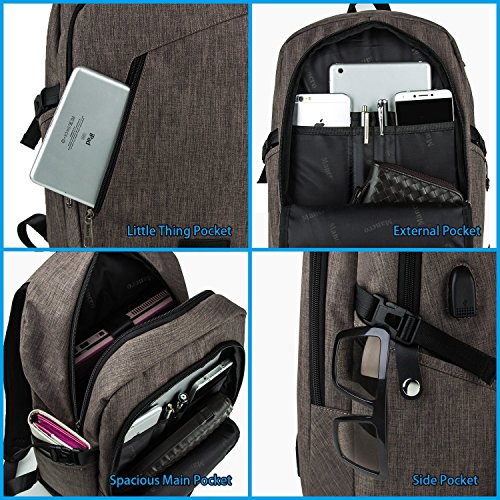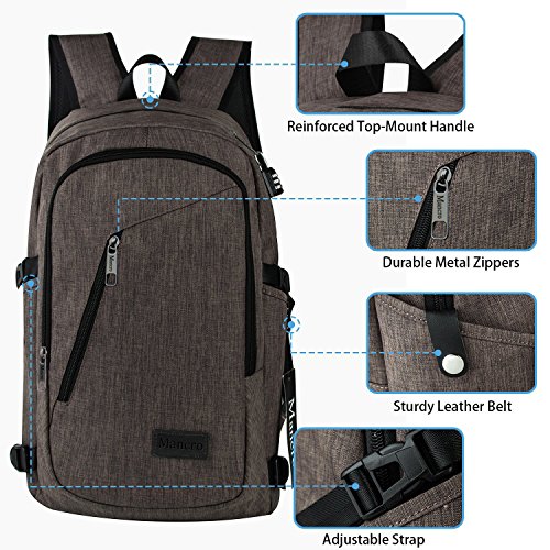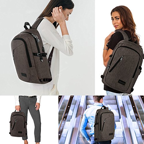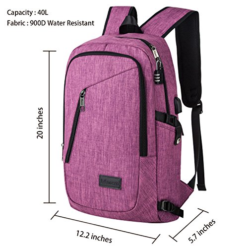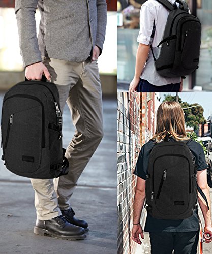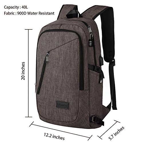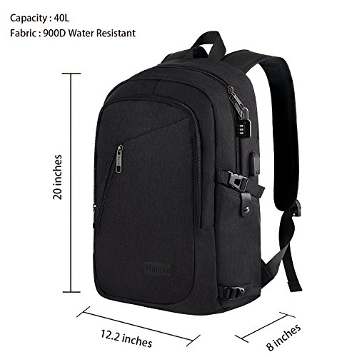 Mancro Business Water Resistant Polyester Laptop Backpack with USB Charging Port and Lock Fits ...