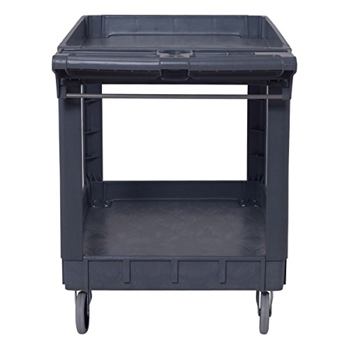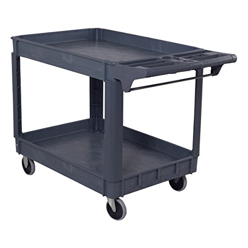 Studio : Apontus Publisher : Apontus Product Description This 2-Tier plastic tool cart is utility and can help you contain many tools. It is Simple in design while complex in function so that you can use it convenient. Constructed of premium PP, it is durable for years of use. This tool cart features ergonomic handle, universal wheels, making mobility easier and smoothly. 0