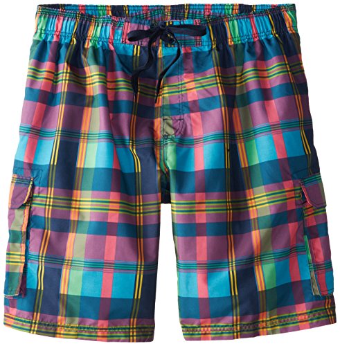 Studio : Kanu Surf Men's Swimwear Publisher : Kanu Surf Men's Swimwear Binding : Apparel Product Description Kanu Surf presents our newest swim trunks yet. Kanu Surf, a surf and swim lifestyle brand, is well know for great prints and colors along with high quality functional apparel for the whole family. All of our trunks are made with our comfort technology quick dry fabric with a UPF rating of 50 . All trunks have 2 side pockets. Some trunks have 1 or 2 cargo pockets as well. Most trunks feature triple needle stitching at seams and rises for extra durability. These trunks are built to last. Our zuma trunk is a classic plaid print with 2 side pockets and 2 cargo pockets. Approximate inseam length is 11 inch. Mesh lining. Outside drawstring. Also available in regular men's sizes small to extra large. Available in kids sizes as well so dads and kids can hit the beach scene as a team 0