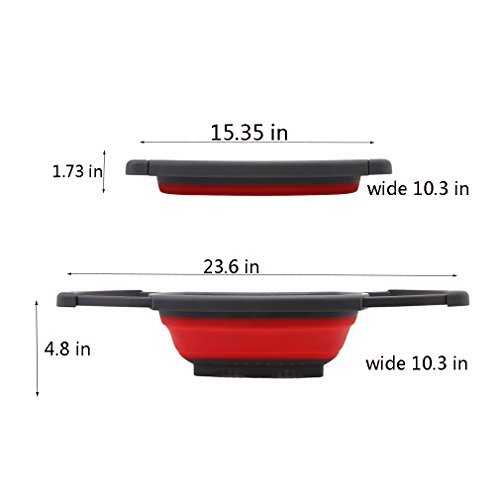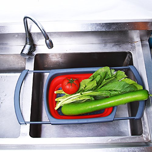 -. Feature : Tobete Collapsible Silicone Colander Strainer Save Tons of Space- The over the sink colander collapses and folds easily and saves you tons of space / Tobete Collapsible Silicone Colander Strainer Protect Food From Bacteria- The collapsible strainer is designed in a way that it will hold up from the bottom of the sink, so the bacteria from the sink don't touch what you are washing. / Tobete Collapsible Silicone Colander Strainer The Kitchen Candy collapsible over-the-sink colander will exceed your expectations and will simplify and declutter your life. By folding down to less than 2 inches it can fit in places you never thought possible. Use for all your straining needs from fresh fruits, leafy greens to pasta, beans, lentils, potatoes and so much more. / Tobete Collapsible Silicone Colander Strainer Kitchen workhorse, collapsible colander perfect for rinsing fruit & vegetables, draining pasta or canned foods; engineered for superior drainage . Gift idea / Tobete Collapsible Silicone Colander Strainer Fits most sink shapes & sizes, compact space-saver design collapses and folds, easy to store in tight cupboards and limited space