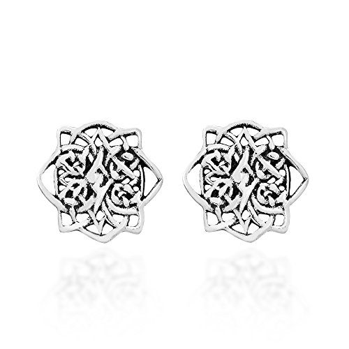 -. Title : Mystic Lotus Celtic Knot .925 Sterling Silver Post Earrings