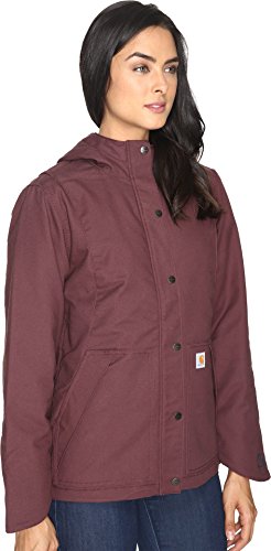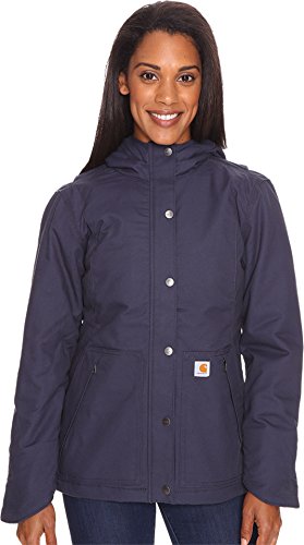 Studio : Carhartt Women's Collection Publisher : Carhartt Women's Collection Binding : Apparel Product Description Looks traditional, feels exceptional. Engineered design provides stretch without bulk, and every element works with you so you can work easier. Made from 8.5-ounce 59 percent cotton/39 percent polyester/2 percent spandex and offers 80 grams of thinsulate insulation, rain defender durable water repellent finish, rugged flex durable stretch technology for ease of movement, mighty back bi- swing between shoulders for instant recovery, flex elbow for less restriction, freedom gusset under the arm which stops ride-ups, two zipper-secured lower-front pockets and chest map pocket, attached three-piece hood with interior draw cord, interior rib knit storm cuffs, adjustable draw cord hem and triple-stitched main seams for durability. 0