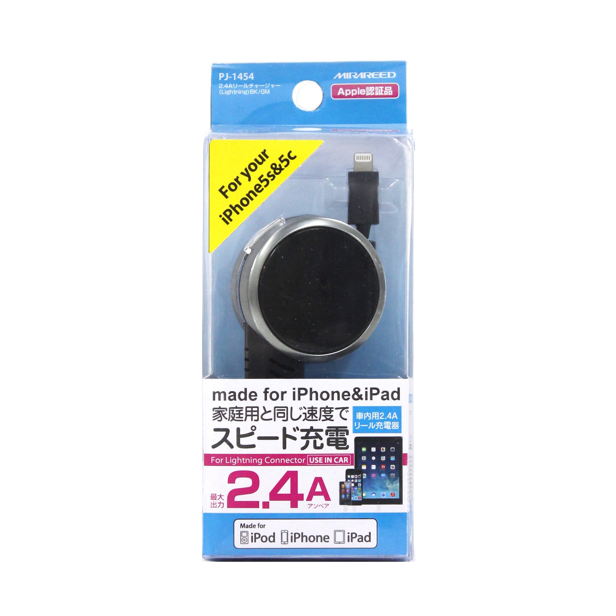 Mirarido (MIRAREED) charger 2.4A reel charger (Lightning) BK / GM PJ-1454