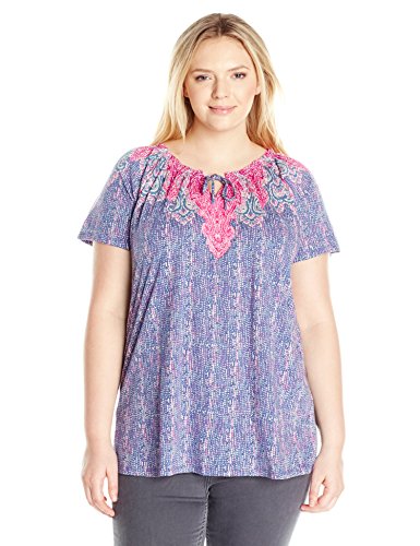 Lucky Brand plus long sleeve woven shirt with all-over multi-colored print