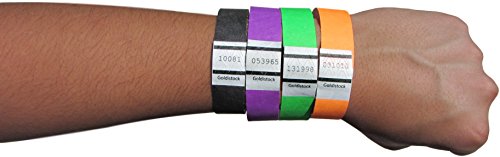 -. Feature : TRUSTED SUPPLIER - Event organizers trust the Goldistock brand. Our wristbands have been used in tens of thousands of events all across the USA and the world. / THE "BETTER SECURITY" WRISTBAND - (SEE IMAGE #2) The "Goldistock" name P.R.Inted on the wristband helps protect you from gatecrashers. / 100% MANUFACTURED IN USA - All material for our wristbands are made in the USA. All manufacturing is in the USA. A single sheet of Goldistock Original Series Wristbands contains 10 wristbands. You get 10 sheets for a total of 100 wristbands. / CONSISTENT QUALITY - We stand behind our wristbands with a 100% satisfaction guarantee. For more detailed information SCROLL DOWN TO PRODUCT DESCRIPTION SECTION. / IDEAL FOR ANY EVENT - Concerts, sporting events, parties, fairs, water & amusement parks, trade shows, conferences, school functions, seminars, and nightclubs. Perfect for any kind of event.