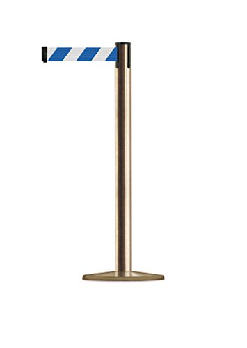 Tensabarrier 889U-2S-2S-MAX-NO-D1X-C - Satin Brass Post, 2" Wide, 13' Length Chevron Blue & White Belt , 38" Height, 2.5" Wide, 156" Length