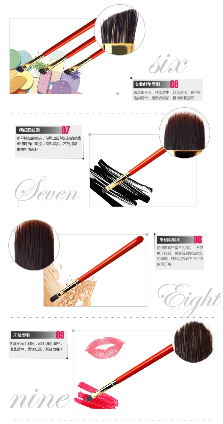 每个爱自己的女生都该有一套属于自己的化妆刷,这套化妆刷套刷给你不一样的化妆触感~超正的质感和触感,让你的整个感官都为之灵动~红纹木杆,让你端庄典雅中透露出与众不同的气质