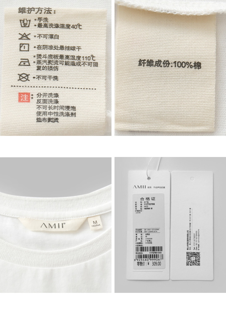 | 洗涤标准: | 不可浸泡不可干洗不可漂白40℃以下手洗110℃以下垫布熨烫悬挂晾干 |