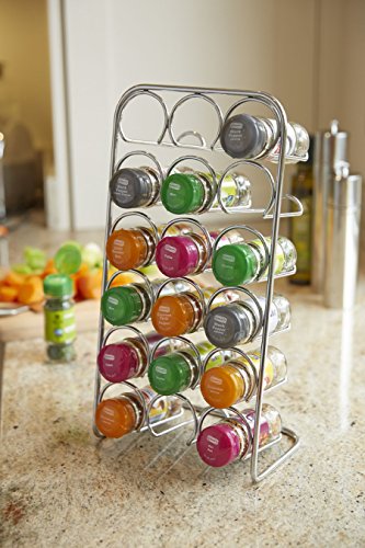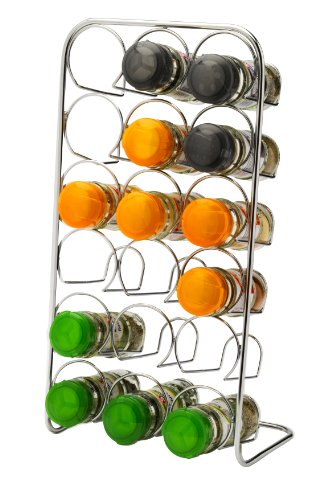 -. Feature : Stylish chrome finish / Fits 18 jars; Open face slots / Compact design creates great space saving worktop storage / Racks are stable and secure and will hold virtually all regular sized spice jars / Measures 15.4 x 7.9 x 5.1 Inch