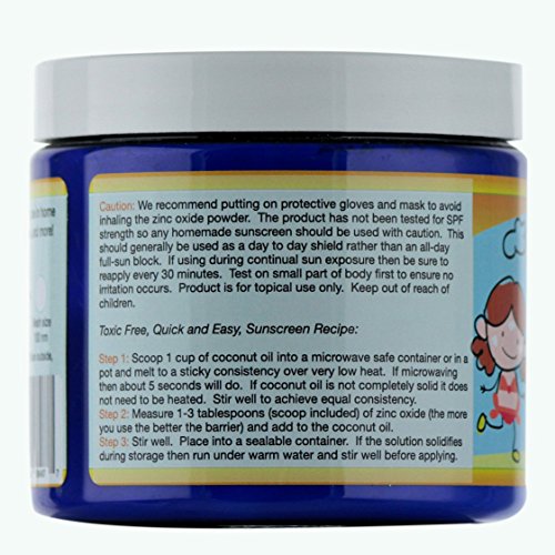 Finally a Zinc Oxide powder that is safe for babies, children, and adults that comes with a FREE scoop and easy to follow Recipe Book. Here's the Problem with nearly all Zinc Oxide powders...They are contaminated with lead. - The cheap sources of zinc oxide have unsafe levels of lead. And as you know, what you put on the skin can be absorbed into the blood, so don't expose your kids to this. - The other problem is that the particle size is too small. Most zinc oxide powders have a particle size that is not safe to use on babies and children. Here's why this is the best Zinc Oxide Powder available. -We use an independent lab to ensure that our zinc oxide is lead free. - Our zinc oxide has the largest particle size on the market at 480nm which ensures that it will be non-toxic and not absorbed through the skin. - Unique grinding process ensures consistent mixing and makes it great for homemade sunscreens, acne creams, diaper creams, and more. - Comes with a FREE scoop and easy to follow Recipe Guide. We purchased lots of other zinc oxide powders as part of our research. The recipe books that we received require a PhD in chemistry and a scale to figure out. Who has time for that? We included a free scoop (tablespoon) and made our recipe book super easy to follow along for busy moms.Not Satisfied? Get Your Money Back With Our 100% Satisfaction Guarantee
