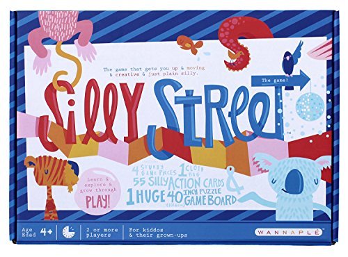 -. Feature : Learn & Explore & Grow Through Play! 1 Giant 40" Puzzle Board, 55 Silly Cards, 4 Solid Wood Game Pieces, 1 Cotton Storage Bag / Playing Silly Street can help kiddos with all kinds of things like social skills, communication, creativity, resilience and confidence. Awesome! / Includes many types of play: Dramatic, Communication, Creative, Interpretive, Competitive, Teamwork. / Join us as we pretend, move, sing and compete our way down Silly Street! / Helps build character traits like Confidence, Grit, Adaptability, Communication and Creativity.