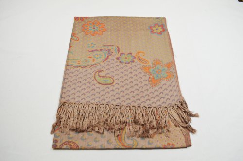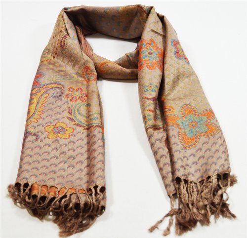 -. Title : Schal Damenschal Paisley Blüten-Muster Schimmernd Hellbraun WS14