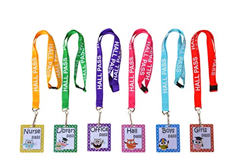 WHAT YOU GET - Includes 6 destination cards for hall, library, office, nurse and 2 restrooms. 34" polyester straps with plastic safety buckles and metal loop with 3" X 2.7" plastic tags.