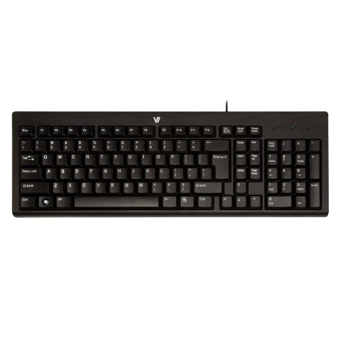 The V7 Standard Keyboard provides superior, all-day comfort for demanding keyboard interaction.  The keyboard features an attractive, gently-curved key design, and durability that makes this keyboard a great value.  With simple plug-and-play connectivity, this keyboard works right out of the box.  It is a standard size keyboard with a 104-key layout that is a stylish black color to compliment the look and feel of any contemporary desktop.